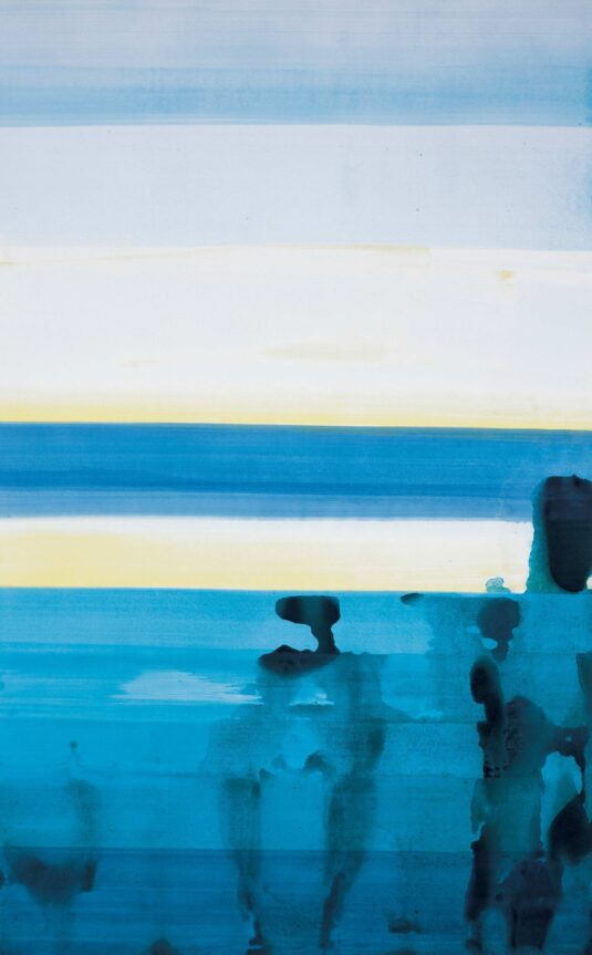 I make my work using propylene and water, paint and thinner, allowing it to flow over the paper or canvas. When it is dry, I start all over again. During this repetition, the vision and images, the consciousness and materials are all interactive until the last round is complete. The natural flow of these materials, without any tampering controlling the substances properties, reveals truth. My paintings are a spiritual experience and proof that in fact, each of us can communicate with the gods, the universe, the earth, humanity, animals, plants and even stones and dust. Because ultimately all these things are closely connected by origin and my painting is an insight into this spiritual communication.”